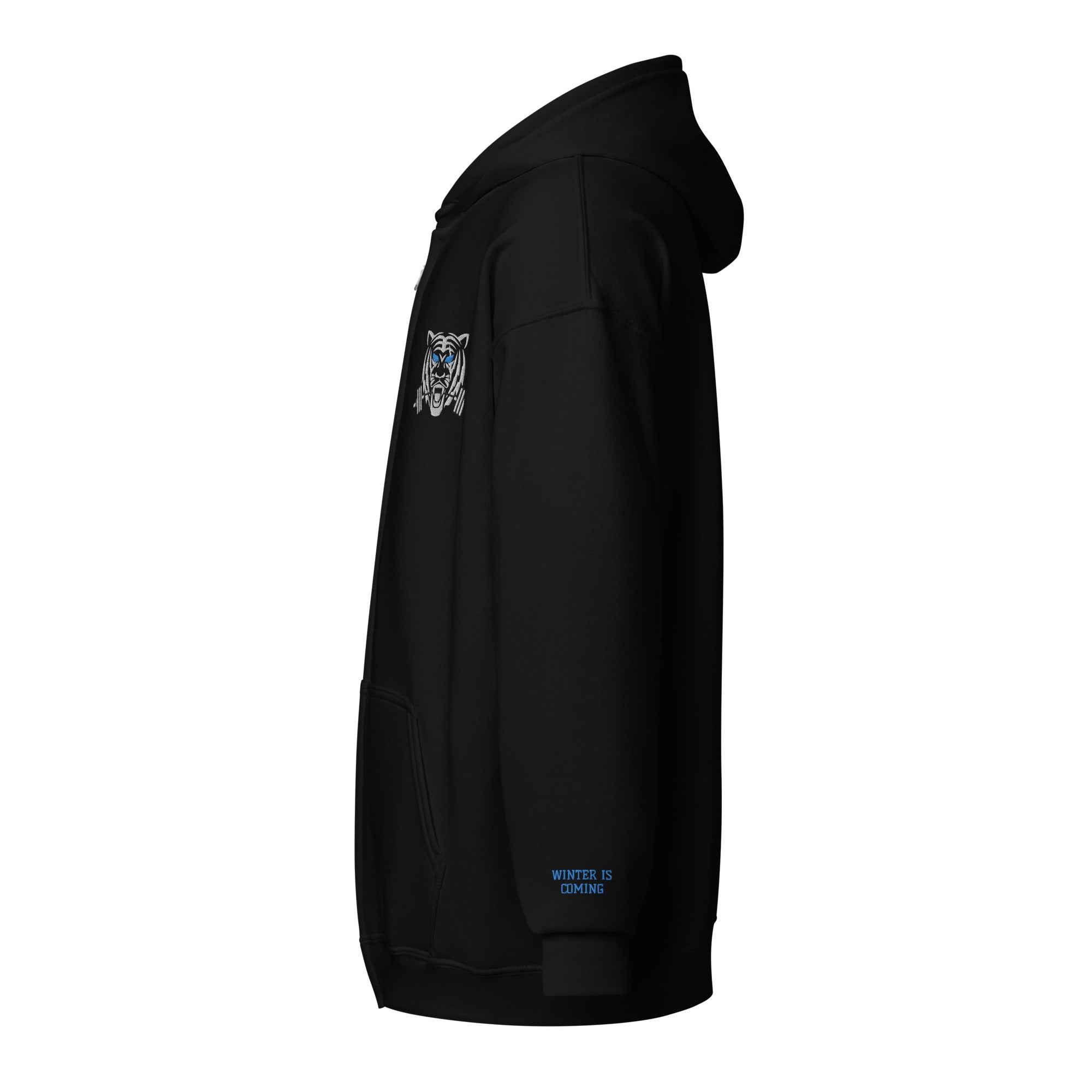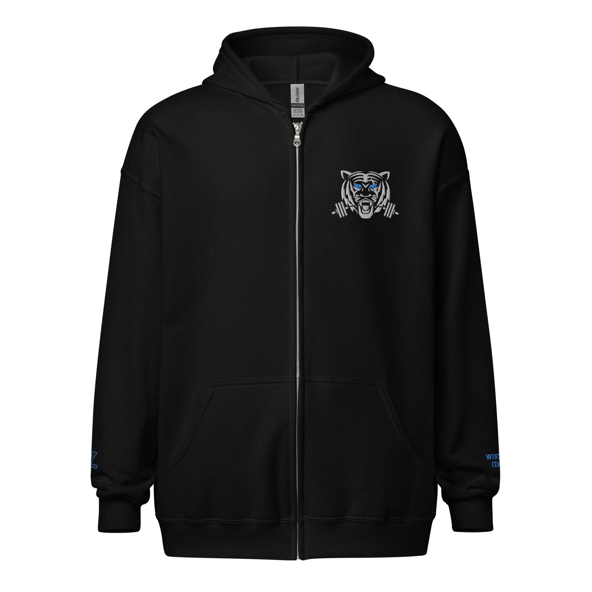 Designed with style and comfort in mind, this hoodie will quickly become your new favorite. It’s made from soft fleece inside and outside, with a sturdy metal zipper, convenient front pockets, and a hood with color-matched drawstrings.